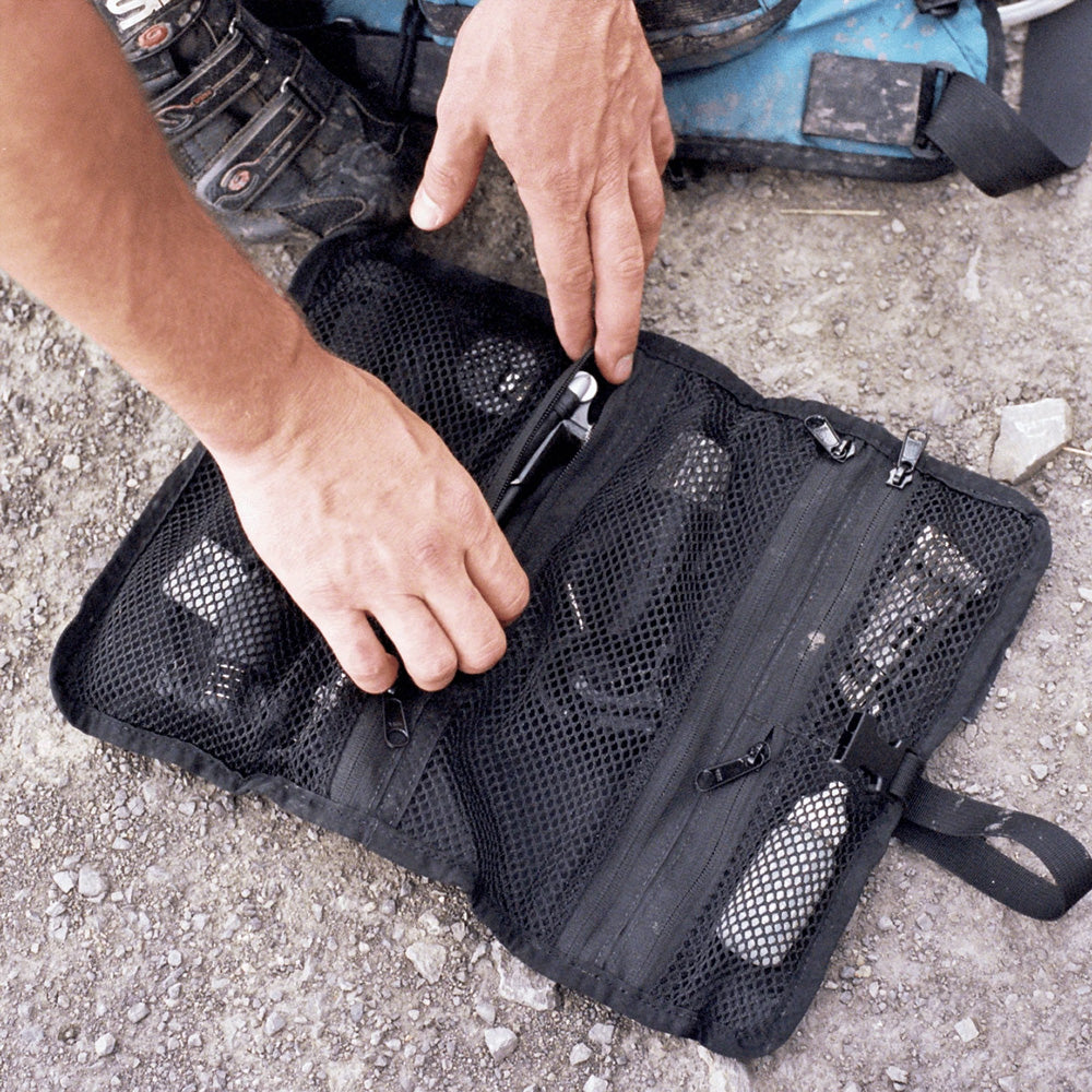 De Tool Roll houdt al je benodigdheden perfect georganiseerd met vier gaasvakken met rits van verschillende grootte. Hij kan van de ene tas naar de andere worden verplaatst en gemakkelijk plat worden opengeklapt om je gereedschap of dagelijkse technische items te tonen. De Tool Roll is gemaakt van XPAC VX21 of Cordura en maakt overal gebruik van YKK ritsen.