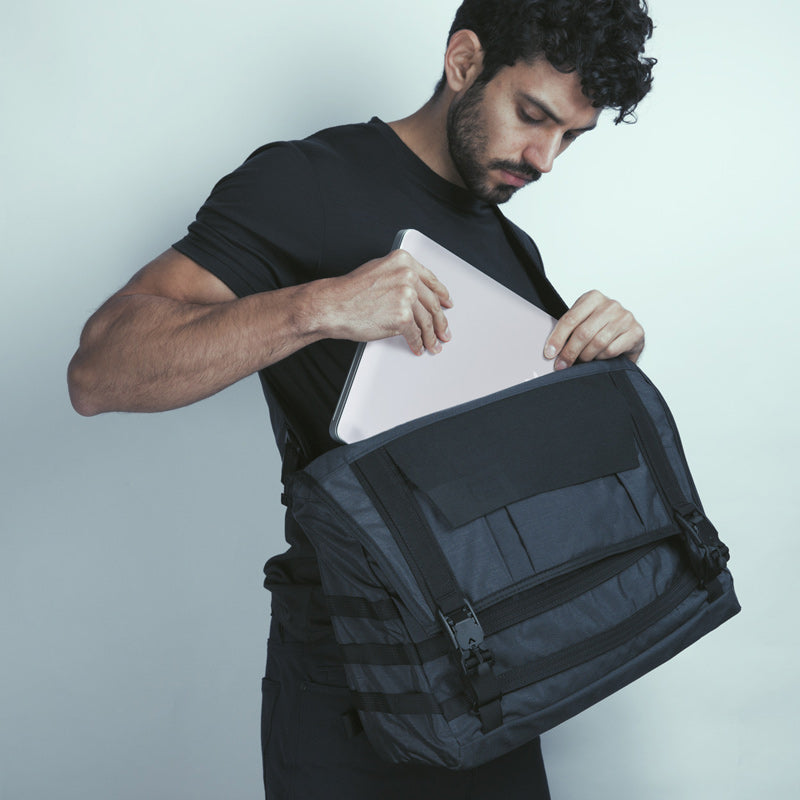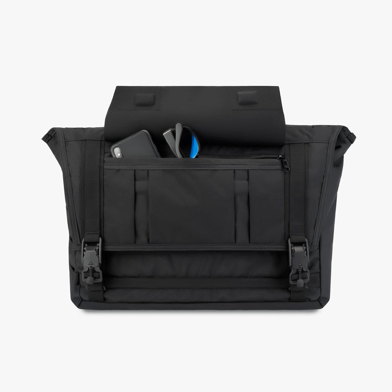 De verstelbare schouderriem is voorzien van een afneembaar, geventileerd schouderstuk en kan worden uitgebreid met onze snel verstelbare messenger schouderriem. De zakconfiguratie omvat een speciaal waterdicht laptopvak met rits, een met tricot gevoerd smartphonevak, een plat vak voor documenten, meerdere algemene vakken, een sleutelclip en een groot hoofdvak.