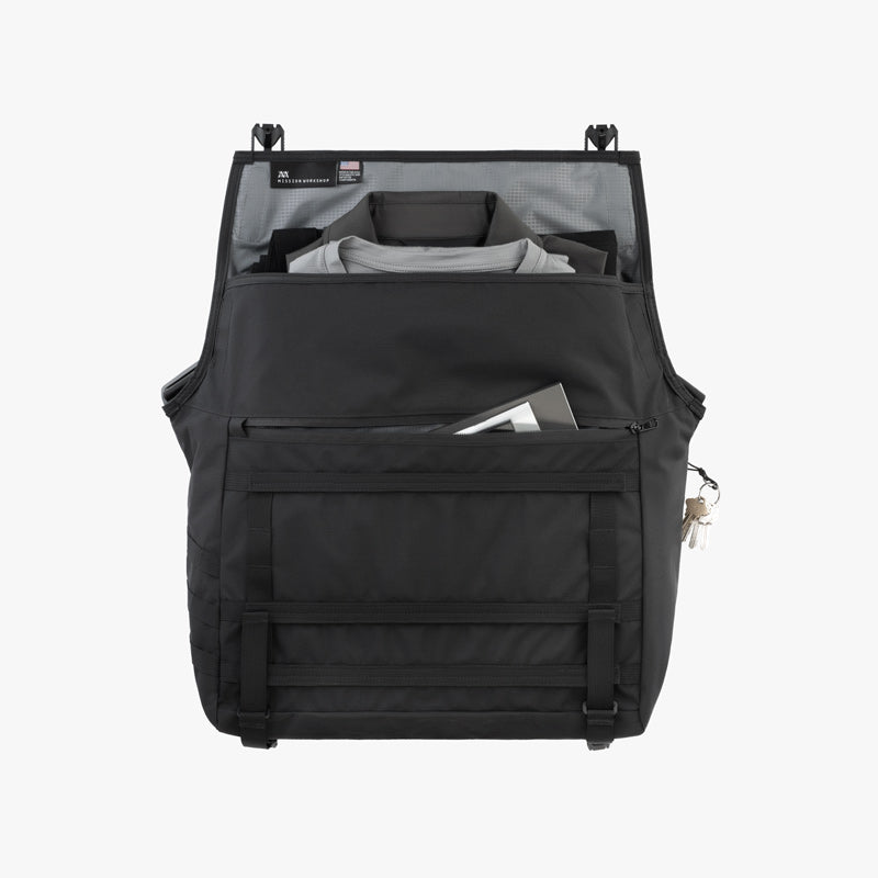 Net als alle Mission Workshop tassen is de Khyte gemaakt met een tweelaagse waterdichte constructie om je spullen veilig en droog te houden. Voor extra veelzijdigheid en maatwerk is de voorkant van de tas voorzien van drie Arkiv® rails voor het bevestigen van Arkiv accessoires zoals de Notch.