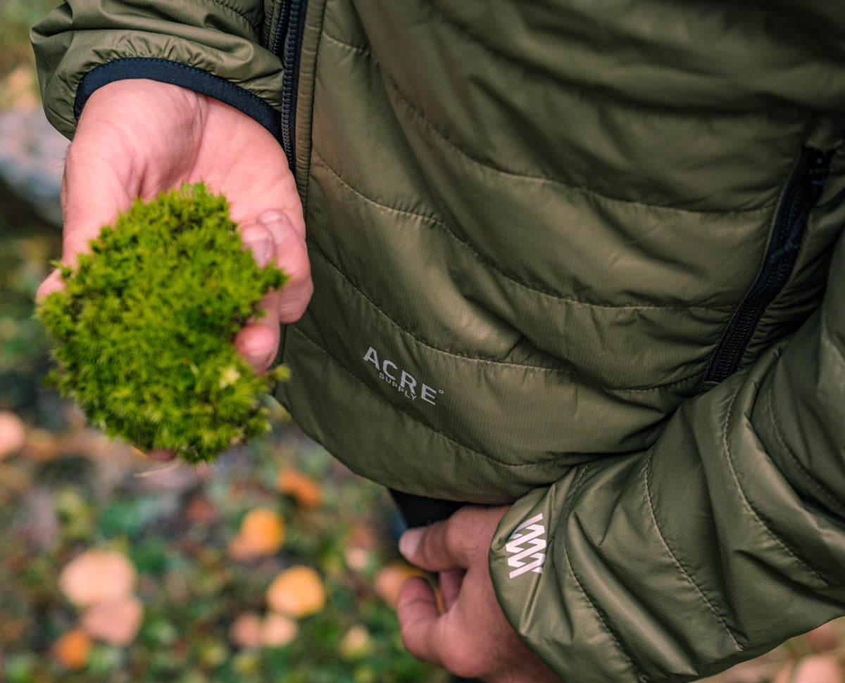 Onze Pertex® Quantum gezichtsstoffen zijn BLUESIGN gecertificeerd en maken gebruik van een milieuvriendelijke PFC-vrije DWR waterafstotende coating. Het Acre Jacket is geïsoleerd met PrimaLoft® 40g Gold Active+, biedt warmte zonder bulk, is ademend en bevat 55% gerecyclede vezels.