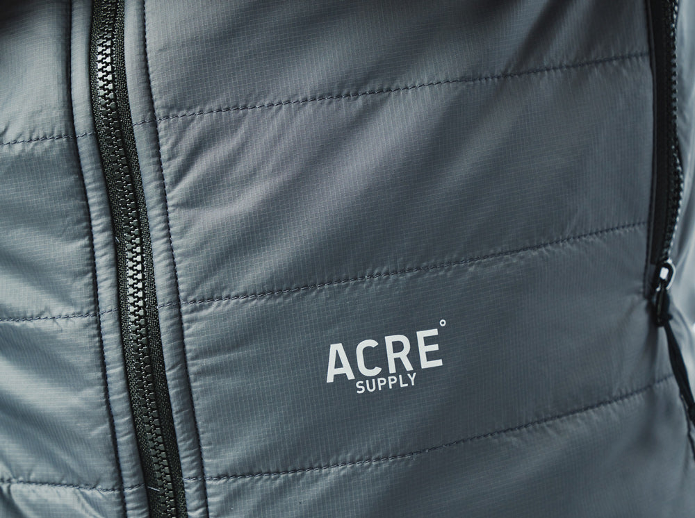 Het Acre vest is geïsoleerd met PrimaLoft® 40g Gold Active+, biedt warmte zonder bulk, is ademend en bevat 55% gerecyclede vezels.