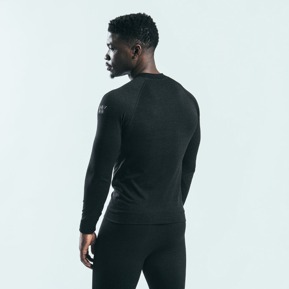 Dankzij de naadloze constructie kan het rompgedeelte van de basislaag uit één stuk worden gebreid, wat de omvang en de kans op wrijvingsplekken minimaliseert. Hierdoor kunnen meerdere stofdiktes in het kledingstuk worden verwerkt zonder dat er aangenaaide panelen nodig zijn. Naadloze basislagen ademen uitzonderlijk goed om je koel te houden als je het warm hebt en warm als je het koud hebt.