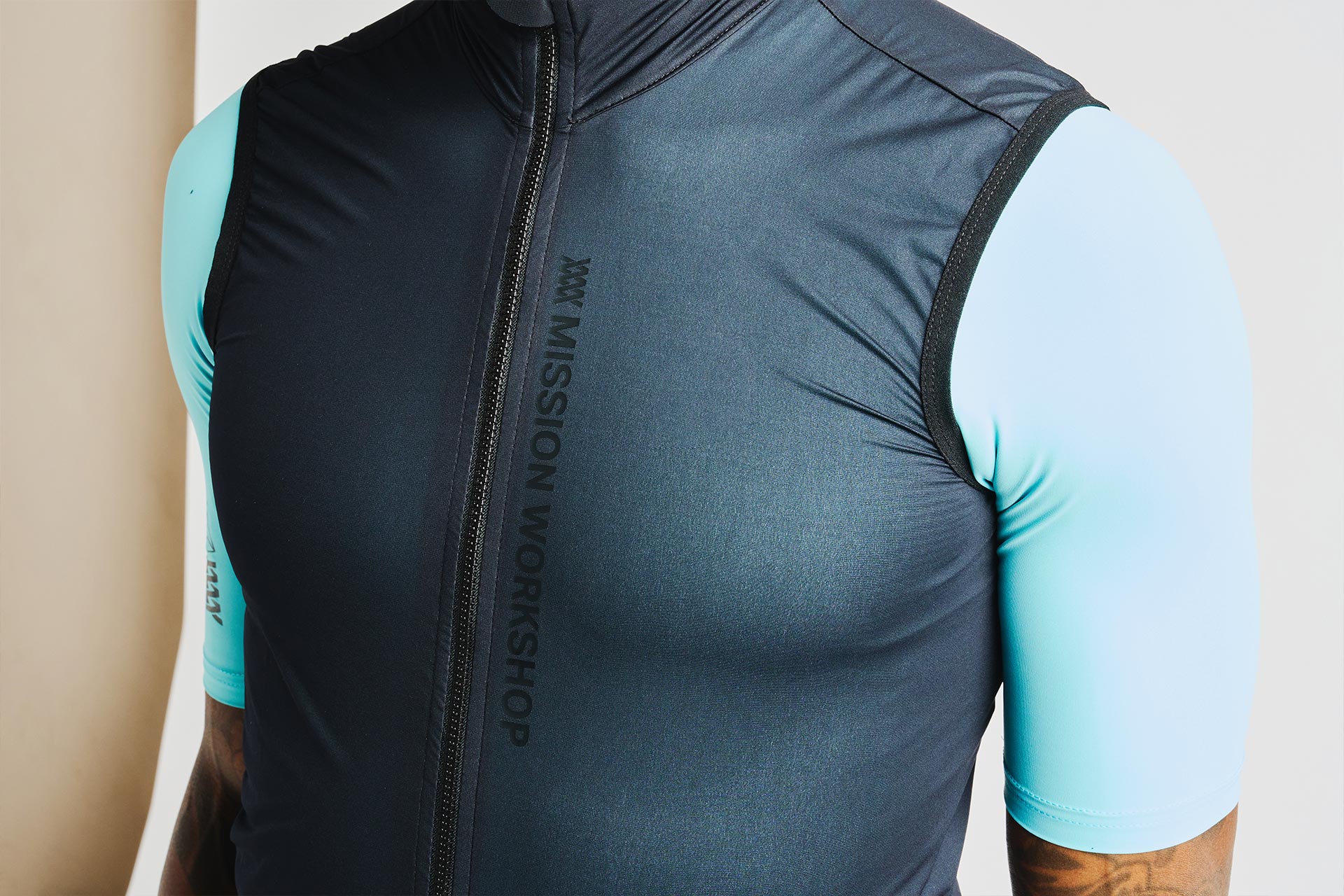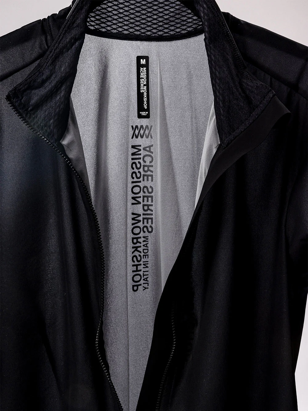 Voor de stof van de bodybody kozen we Zero Wind® van Pidigi. Met 70 jaar continu onderzoek en stofinnovatie is Pidigi een krachtpatser en de Zero Wind® stof van Italiaanse makelij is bijna perfect. Met een absurd lage gewicht van 53 g/m2 is deze tweelaagse stof een formidabele barrière tegen wind en regen. Het slimme membraan is zowel waterdicht als hydrofiel, zodat zweet van het lichaam wordt afgevoerd, maar water van buiten wordt afgestoten en hoe intensiever de fysieke activiteit, hoe ademender het membraan wordt. Voor een betere waterbestendigheid is de buitenkant behandeld met BIO-WR Technology, een niet-gefluoreerde ecologische DWR water- en vuilafstotende stof.