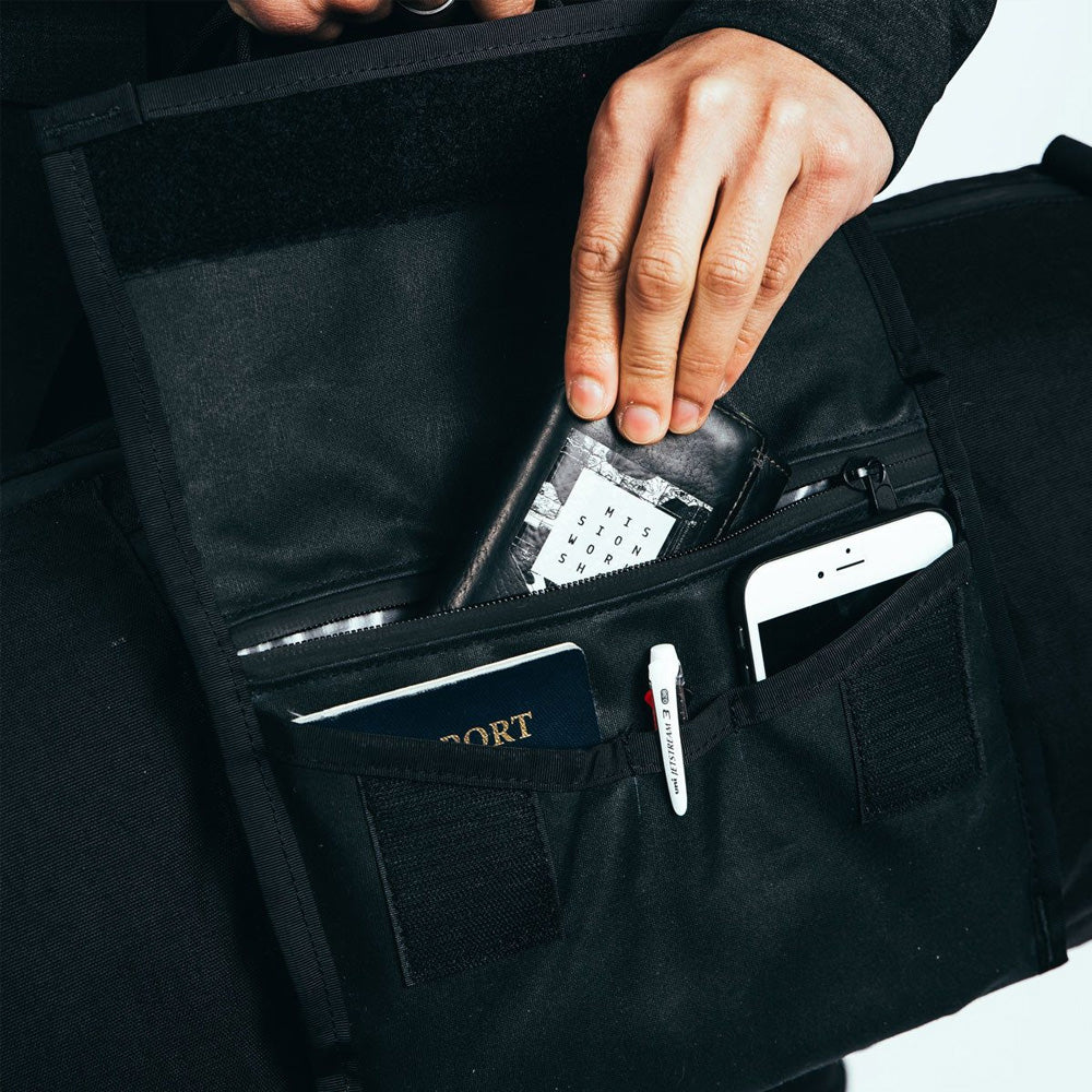 De Mini Folio heeft een ruim ritsvak waar al je reisbenodigdheden in passen. Twee vakken aan de voorkant voor telefoons en een pennenvak in het midden zorgen voor extra organisatie.