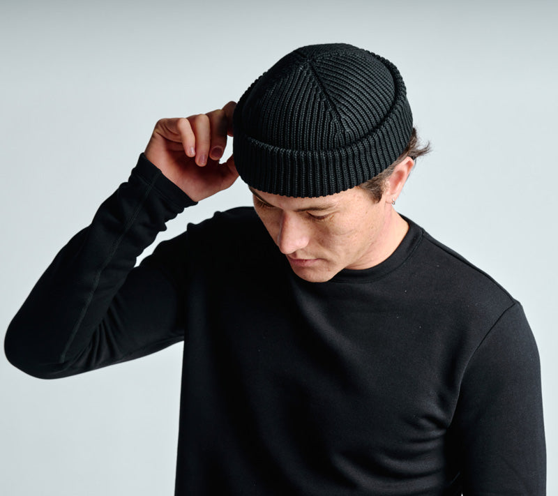 De Basin is gemodelleerd naar de klassieke horlogemuts die zeemannen en koopvaardijschepen al meer dan een eeuw dragen. Gebreid aan de noordkust van Portugal met een dikke geribde constructie en een perfecte mix van katoen en acryl, is de Basin zacht, warm en uitzonderlijk duurzaam. Kan worden gedragen met een enkele of dubbele vouw voor een andere look en pasvorm.