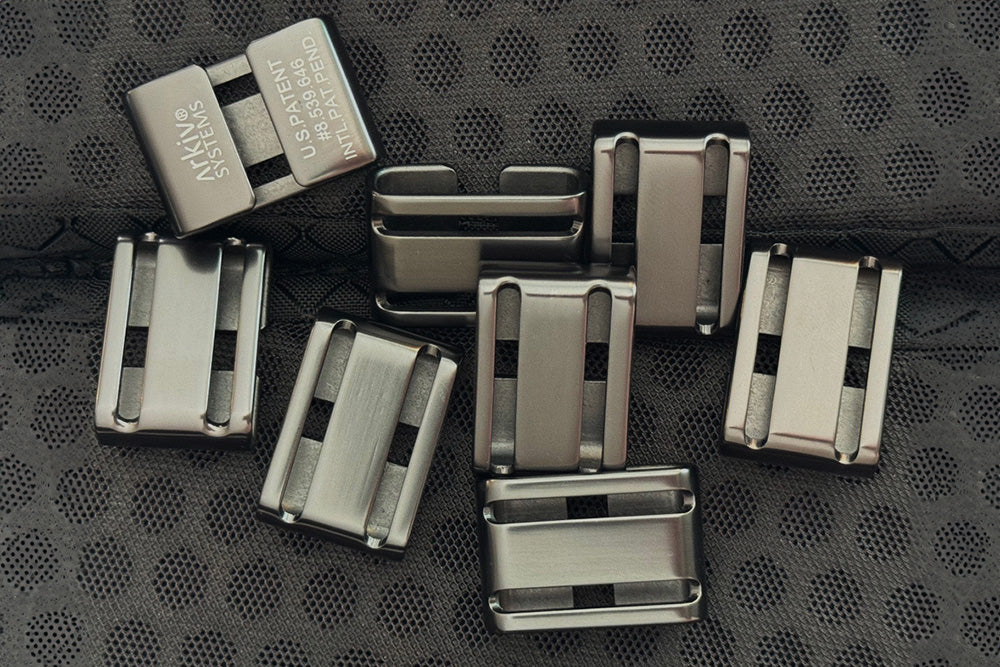 Key features include a weatherproof external laptop compartment, a luggage handle pass-through, a quick-access exterior pocket for essentials, and an internal organizer for smaller items. The Arkiv® system adds modularity, letting you customize capacity and functionality with Arkiv® accessories.