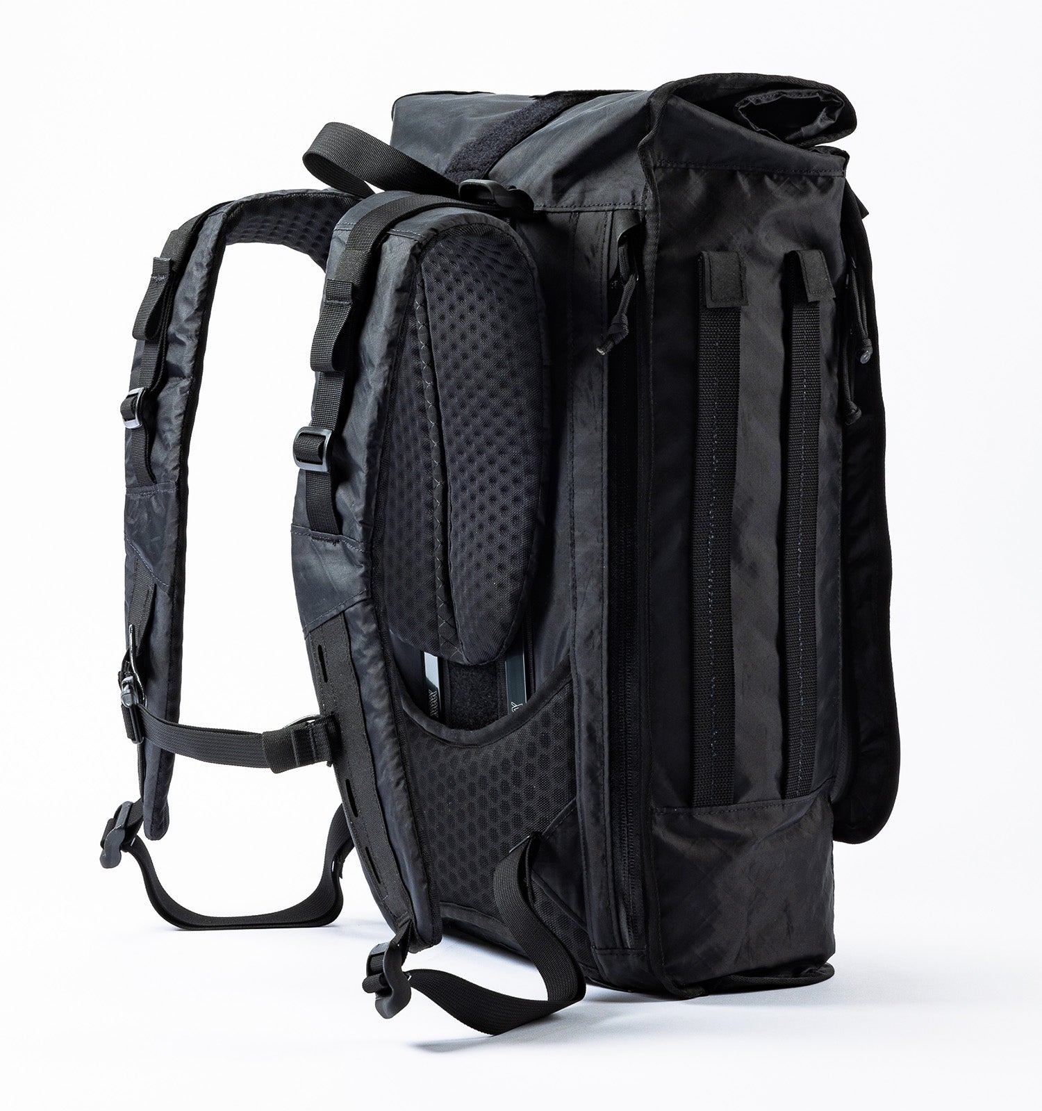 Made in USA and constructed with ECOPAK™ fabrics by Challenge, the pack is fully weatherproof and sustainably designed. Made from 100% recycled REPREVE® rPET fiber and Challenge RUV™ film, ECOPAK™ resists moisture, provides 5x greater UV protection than conventional materials, and maintains its color and durability over time. YKK Aquaguard zippers and a Fidlock magnetic closure ensure secure, easy access in any environment.