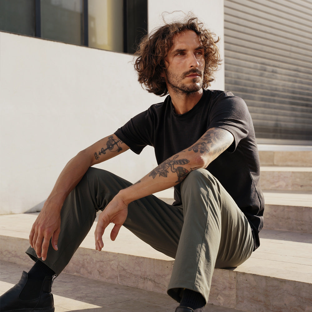 De Division is een ultralichte chino waarmee je alles kunt doen en die is ontworpen om uit te blinken in elke situatie. Hij is gemaakt in New York City, heeft uitzonderlijke 4-weg stretch en heeft een klassieke indeling met vier zakken plus een extra verborgen zak met YKK-rits die ideaal is voor het veilig opbergen van een telefoon of portemonnee.