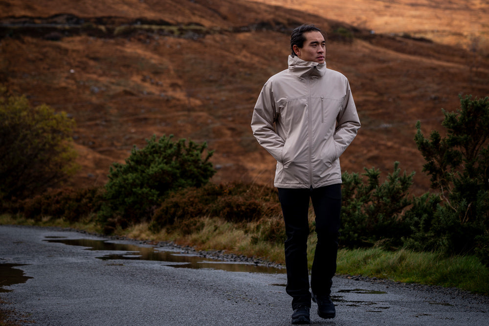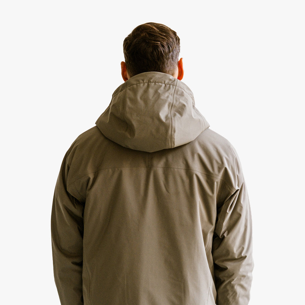 De 3-laags shell is volledig naad getapet en heeft een membraan dat damp actief laat ontsnappen en regen buiten houdt. Dit werkt synergetisch met de PrimaLoft isolatie om de lichaamstemperatuur te reguleren. De buitenkant is behandeld met een milieuvriendelijke C0 DWR (durable water repellent) om regen af te voeren.