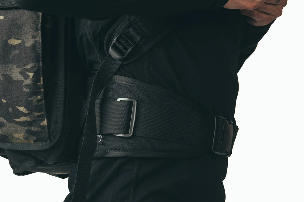 Onze heupriem met laag profiel is gemaakt voor die extra zware ladingen. Hij integreert naadloos met het interne frame van de rugzak om het gewicht gelijkmatig over de heupen te verdelen. Deze verstelbare, volledig gevoerde heupriem kan eenvoudig worden verwijderd als je hem niet nodig hebt en in de rugzak of ergens anders worden opgeborgen voor later gebruik.