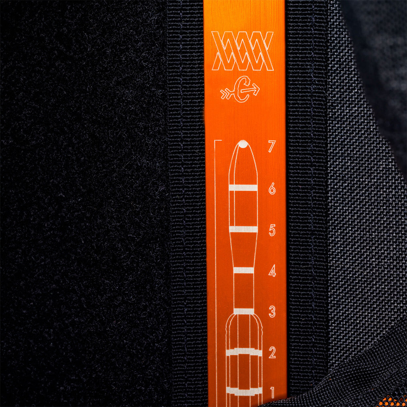 Gemaakt van luchtvaartkwaliteit 6061-T6 aluminium voor sterkte en laag gewicht. Custom laser geëtste collab graphics en speciale carry-oranje anodisering.