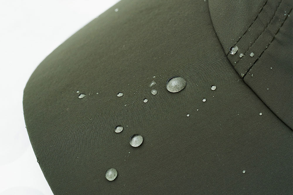 De wicking stof heeft een langdurige waterafstotende (DWR) behandeling en een geventileerde hoofdband van gaas om je zelfs in een lichte regenbui droog te houden.