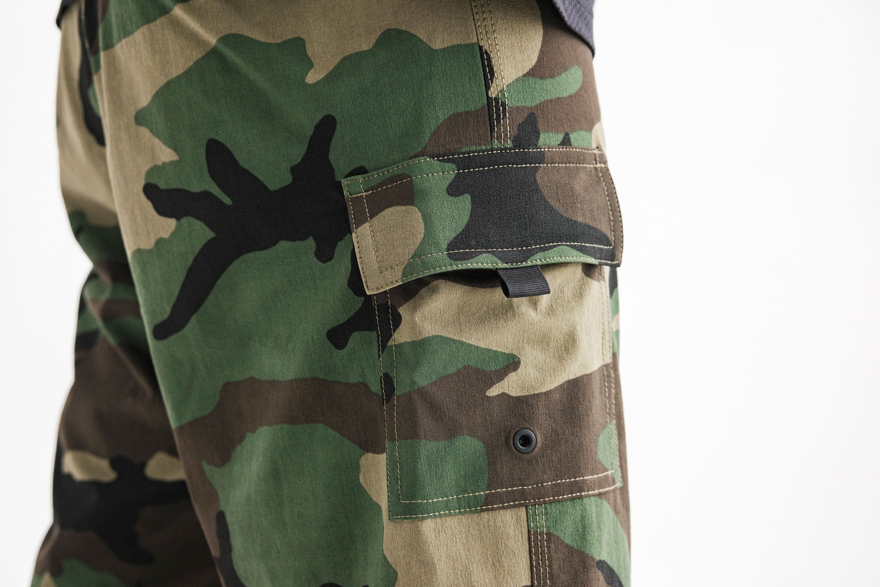Built from a lightweight, American-made, military-spec fabric with 4-way stretch, water repellency, and quick-dry performance, The Ocho is made to handle whatever you throw at it. We’ve tested this material for years—on trails, in the saddle, and in the water—and it continues to perform, ride after ride, rinse after rinse.