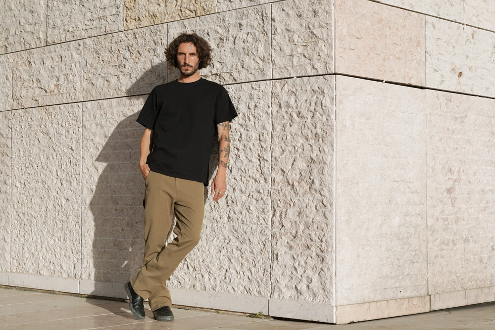 De Paragon is onze kijk op de klassieke klusbroek. Hij is gemaakt in New York van dezelfde 4-way stretchstof als de Mission Jean en heeft een relaxte pasvorm en wijdere pijpen voor meer bewegingsvrijheid. Deze geavanceerde stof is ontwikkeld voor Mission Workshop door Mectex M.I.S. in hun fabriek in Como Italië en bereikt zijn extreme stretch zonder in te boeten aan duurzaamheid of structuur.