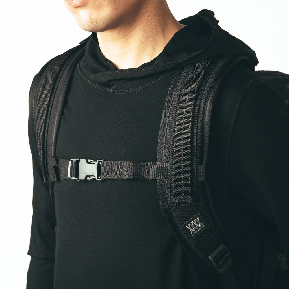 De rugzak kan worden gebruikt in de "roll-top" modus of in een traditionele "flap-down" configuratie, heeft één extern vak met ritssluiting voor items zoals een telefoon of paspoort, en één binnenvak met ritssluiting dat ideaal is voor documenten en waarin maximaal een 16" MacBook Pro past.