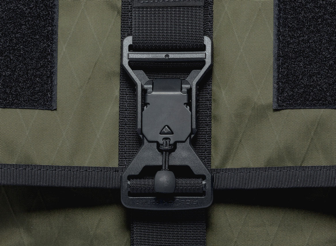 Optimal pack organization is achieved with five distinct sections: two large and a small front pocket, a rear roll-top stuff compartment, and the main expanding central section. The pack also includes a Fidlock® magnetic closure, weather-resistant construction, YKK Aquaguard zippers, and dual Arkiv® rails on the shoulder straps for modular add-ons.