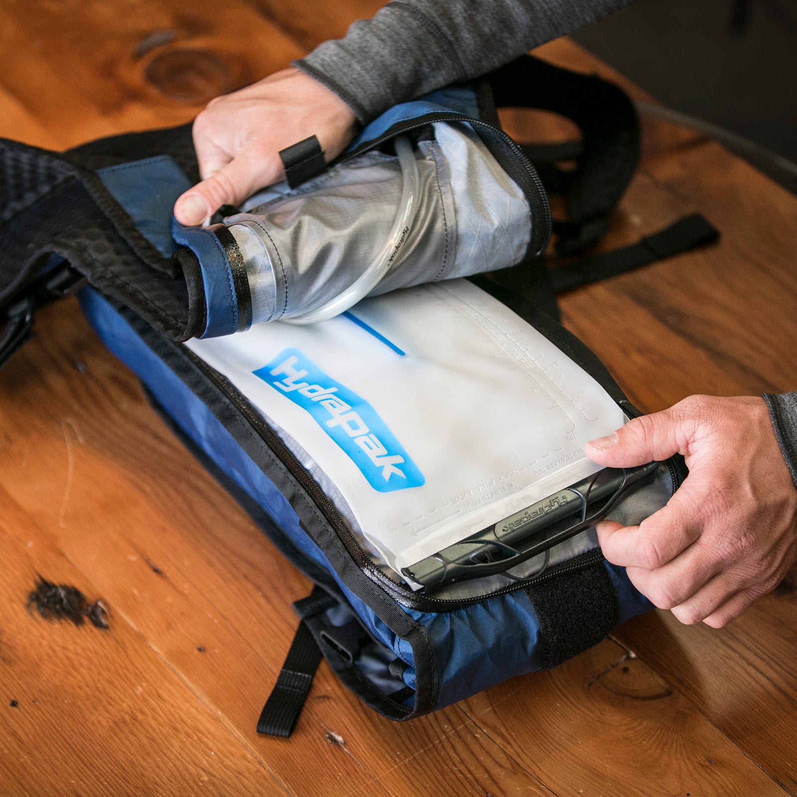 Er zijn twee bidonhouders aan de buitenkant en een apart hydratatiecompartiment dat compatibel is met reservoirs tot 3 liter.