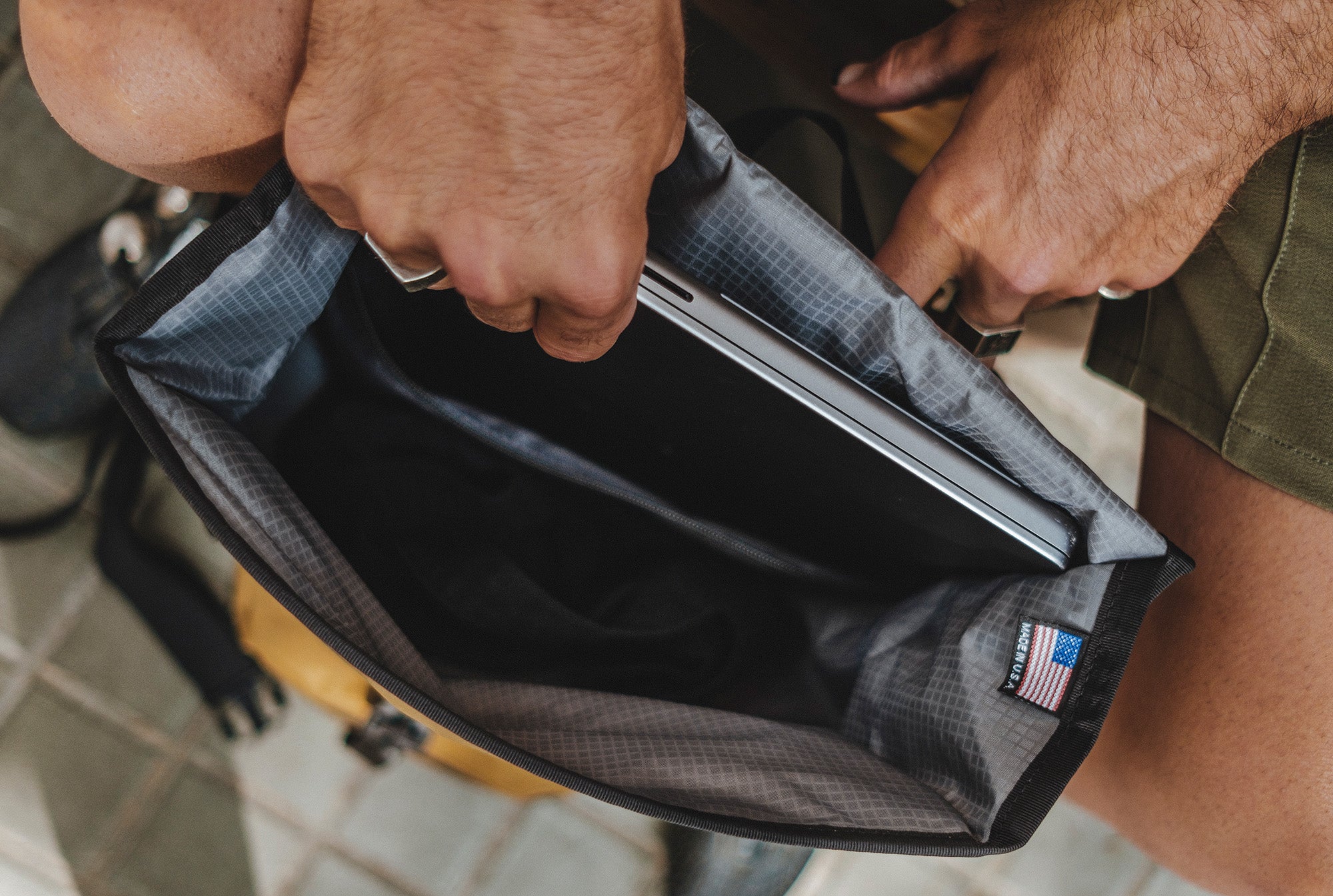 De hoofdvrachtruimte biedt veel ruimte plus een gewatteerd en met rits afsluitbaar waterdicht laptopvak waar MacBooks tot 16" in passen. De klep is beveiligd met een magnetische Fidlock sluiting voor snelle en betrouwbare toegang en is voorzien van een verstelbare heupgordel, borstbanden en een ingebouwde lamplus.