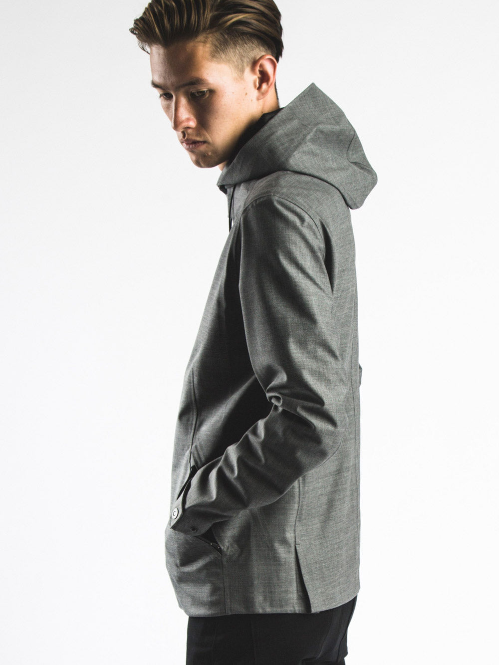 De toevoeging van fijne wol aan de buitenkant zorgt voor een getailleerd uiterlijk, terwijl de waterdichte constructie en stormcapuchon betrouwbare beschutting bieden als het weer omslaat. Voorzien van twee YKK Aquaguard ritszakken, twee interne ritszakken en een intern ticketzakje.